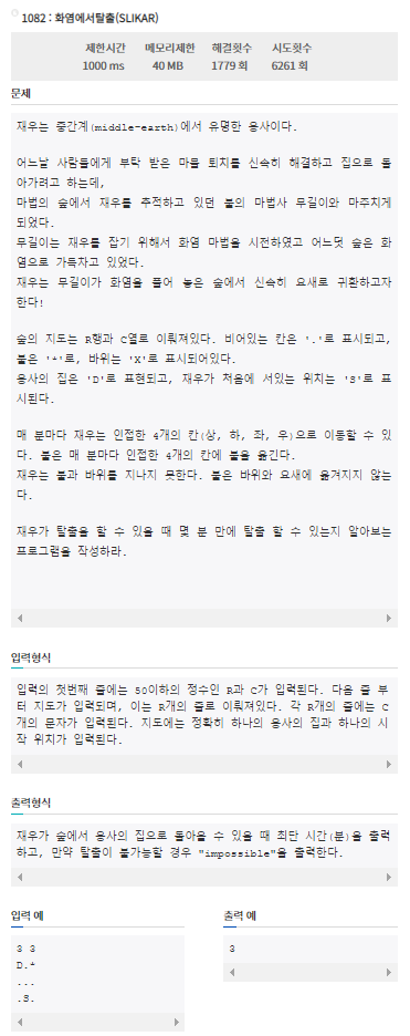 JUNGOL | 화염에서탈출(SLIKAR) > 문제은행